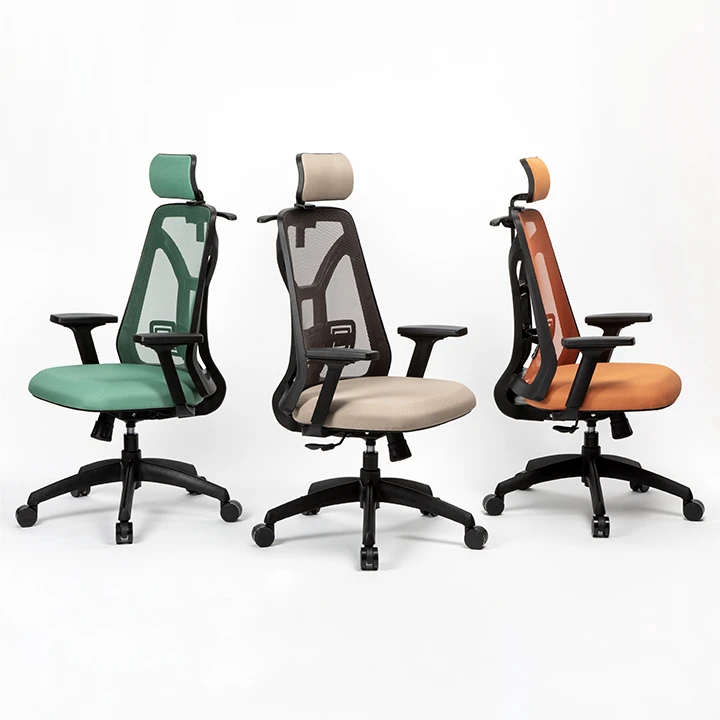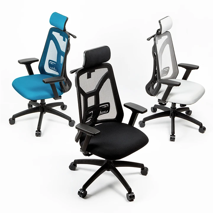 - Respaldo tapizado en tela de red color: Azul, gris perla, naranja, negro, visón, rojo, verde, petróleo.